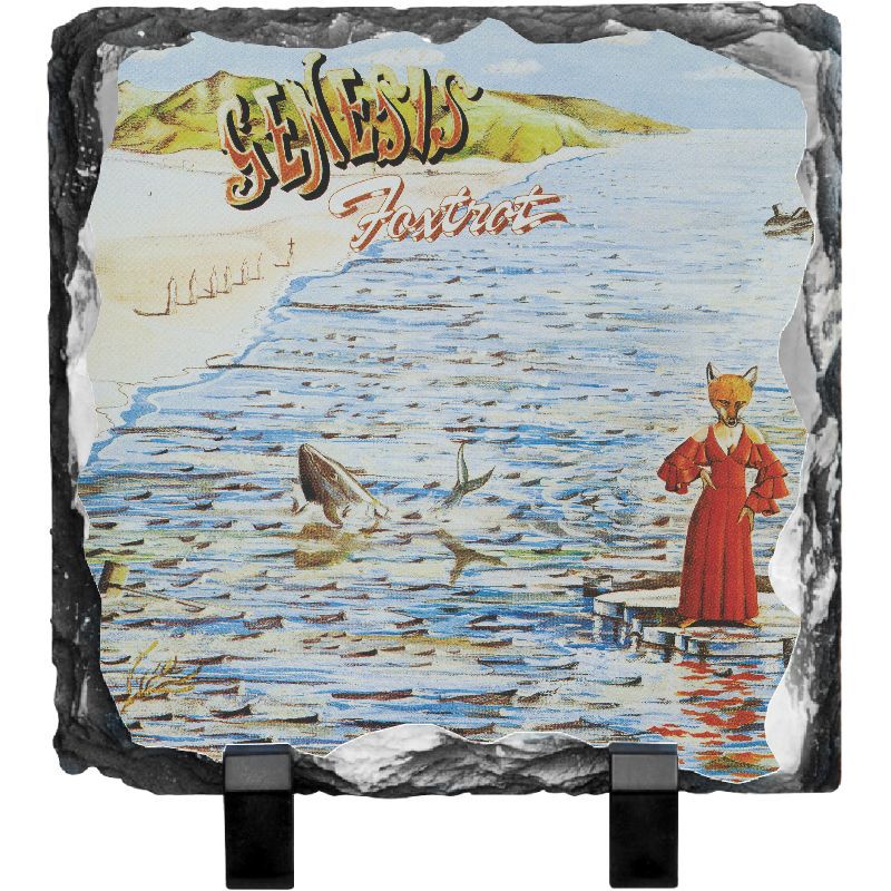 Slate features the classic original Genesis album artwork . Created from finely-grained sedimentary rock, the slate canvas measures 7.5" x 7.5" and is 3/8" thick. The ultra-flat coated image area provides for beautiful and consistent photo transfers while the individually fractured edges helps to seamlessly blend the printed image into each piece. Includes plastic stand. This item is print-on-demand. Please allow for an additional 2-3 days for your order to ship.
