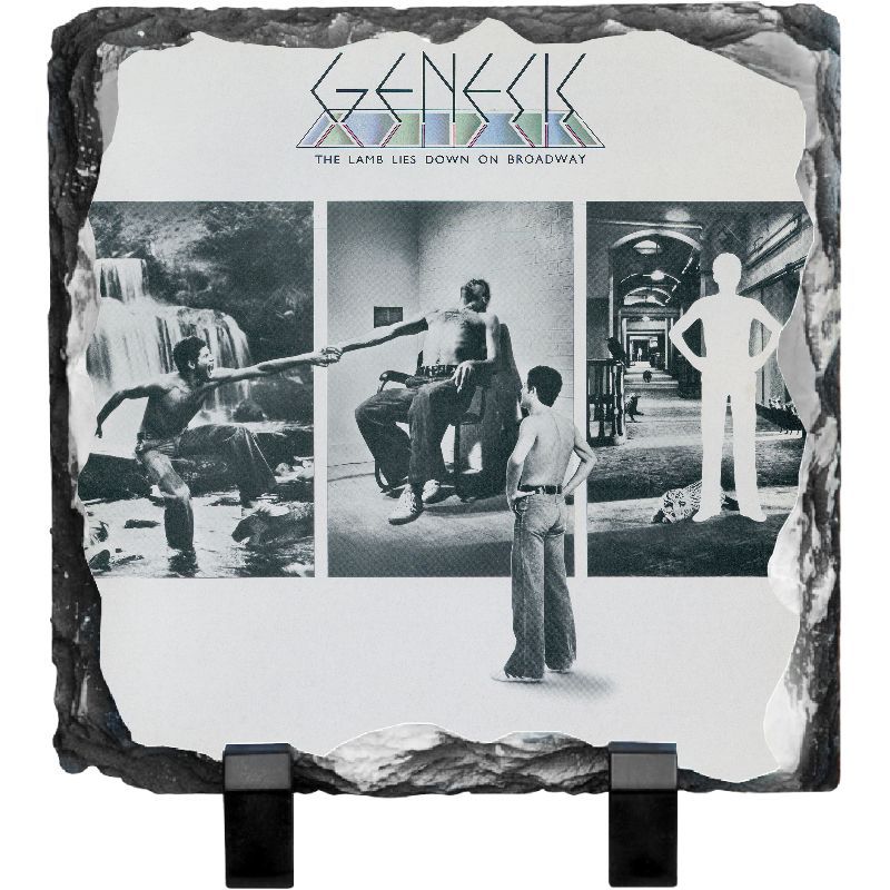Slate features the classic original Genesis album artwork . Created from finely-grained sedimentary rock, the slate canvas measures 7.5" x 7.5" and is 3/8" thick. The ultra-flat coated image area provides for beautiful and consistent photo transfers while the individually fractured edges helps to seamlessly blend the printed image into each piece. Includes plastic stand. This item is print-on-demand. Please allow for an additional 2-3 days for your order to ship.